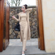 中国风名媛2017新款复古少女蕾丝刺绣短款修身改良旗袍连衣裙夏季