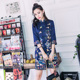 2017春季新款韩复古名族风高端绸缎重工刺绣7分袖修身旗袍连衣裙