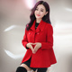 晨蝶春装双排扣修身短款毛呢短外套女装 宽松休闲红色呢子大衣