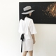 BOCCALOOK定制 2017夏装圆环系带设计圆领短袖女T恤裙宽松中长款