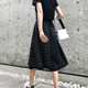 BOCCALOOK定制 2017夏装新款拼接设计格子黑色高腰半身裙中裙A裙