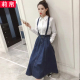 韩版百褶裙牛仔裙a字裙半身裙 学生高腰大摆裙子夏中长款背带裙女