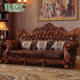 雅居汇 欧式真皮沙发实木雕花沙发头层牛皮客厅123组合美式家具