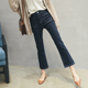 Vintage调调!明线口袋修身微喇叭牛仔裤新款修身弹力九分微喇裤