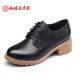 蜘蛛王女鞋粗跟春季新款正品真皮系带休闲低跟女单鞋通勤圆头皮鞋