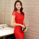 新娘旗袍敬酒礼服时尚复古蕾丝旗袍女士结婚礼服红色中式婚礼嫁衣