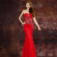 新娘敬酒服鱼尾红色圆领婚礼晚礼服旗袍裙 时尚修身女士结婚礼服