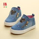 贝贝童鞋儿童帆布鞋男女童高帮牛仔布鞋一脚蹬套脚鞋2017春季新款
