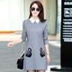 t恤女条纹短袖中长款韩范夏季百搭体恤宽松韩版丅恤女中袖连衣裙