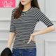 黑白条纹t恤女装中袖春夏韩版新款修身圆领纯棉五分袖上衣打底衫