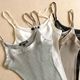 出口天然桑蚕丝针织真丝吊带文胸一体无钢圈内衣打底背心薄吊带衫