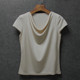 针织真丝 短袖中年女30-40岁夏t恤宽松休闲桑蚕丝荡领上衣 打底衫