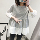 韩国代购女装17春季七分袖镂空蕾丝拼接竖条纹娃娃款裙摆棉布衬衫
