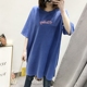 韩国进口女装17夏定制纯棉中长款宽松卡通后背米奇字母短袖T恤女