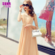 尚纳夏季/修身雪纺连衣裙女/气质百褶裙/波西米亚长裙