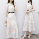 2017夏季新款女装韩版短袖雪纺连衣裙女蕾丝修身两件套时尚套装裙