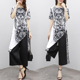 夏天套装女潮时尚气质复古民族风印花短袖阔腿裤套装个性两件套