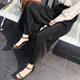 阔腿裤女2017春夏韩版高腰褶皱宽松九分裤简约显瘦纯色直筒裤子薄