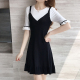 2017春秋新款韩版显瘦半袖荷叶袖假两件吊带针织连衣裙女夏季百搭