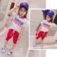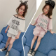 儿童夏装女字母半袖两件套破洞韩版2017宽松休闲女童套装 3-5周岁