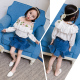 女童衬衫刺绣花朵吊带长袖小清新宝宝娃娃衬纯色儿童上衣公主裙衬