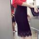 蕾丝裙摆拼接 性感包臀裙 鱼尾裙 不对称弹力半身裙 荷叶边一步裙