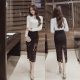 2016春韩版弹力下摆蕾丝拼接包裙包臀一步裙显瘦半身裙女职业裙子
