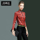 海青蓝品牌女装2017春装新款时尚直筒印花上衣翻领长袖百搭衬衫女