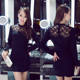 2015秋冬新款夜店女装性感蕾丝钩花透视修身显瘦长袖打底连衣裙