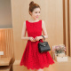 2017夏季新款韩版修身高腰名媛A字无袖蕾丝连衣裙蓬蓬裙学生短裙
