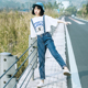 小雨良品学院风高腰牛仔背带裤女春装新款宽松韩版百搭学生九分裤