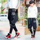 潮牌男装假两件九分裤子运动嘻哈原宿风小脚棉麻哈伦裤阔腿休闲裤