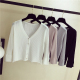 实拍新款韩版V领九分袖简约短款针织防晒披肩外搭开衫女薄款