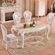 欧式大理石台面高档餐桌椅组合长方形6人家用实木雕花白色小饭桌