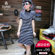 欧美2017夏装新款连帽韩版休闲时尚潮流女装宽松条纹T恤女中长款