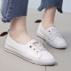 春夏时尚百搭休闲一脚蹬小白鞋懒人圆头平底女单鞋平跟真皮小皮鞋