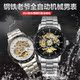 钢铁老爷双面镂空全自动机械表男表防水男士手表钢带腕表时尚休闲