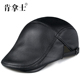 肯拿士 真皮男帽子秋冬季牛皮鸭舌帽男士休闲时尚户外保暖八角帽