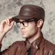 肯拿士 真皮帽子 男士冬季休闲时尚平顶军帽牛皮男帽户外冬天保暖