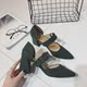 春夏单鞋2017新款中空尖头工作鞋女高跟鞋粗跟韩版包头罗马凉鞋潮