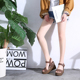 真皮厚底鱼嘴鞋2017夏新款摇摇鞋侧拉链高帮透气网纱松糕跟凉鞋女