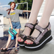 2017夏季新款真皮坡跟高跟厚底鱼嘴粗跟平底百搭魔术贴休闲凉鞋女