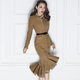 le palais vintage优雅名媛驼色收腰显瘦鱼尾毛呢外套 送围巾1.25