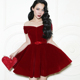 le palais vintage绝美PARTY红色植绒露肩收腰蓬蓬裙0.5
