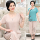 中老年人女装夏装棉麻印花套装大码妈妈装夏季休息短袖T恤两件套