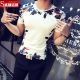 夏天韩版男士打底衫潮流紧身体恤学生圆领修身印花简约短袖t恤潮