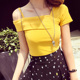 2017夏装新款韩版学生百搭衣服女一字领吊带露肩上衣短袖漏肩t恤