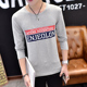 青年春季男士长袖t恤圆领修身印花打底衫上衣服春衣男装春款男装