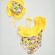 夏季韩版黄花斜肩儿童游泳衣 连体泳衣可爱公主 女童泳装送泳帽