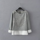 外贸原单女装春季新款2016激光镂空修身翻边假两件长袖上衣T恤衫